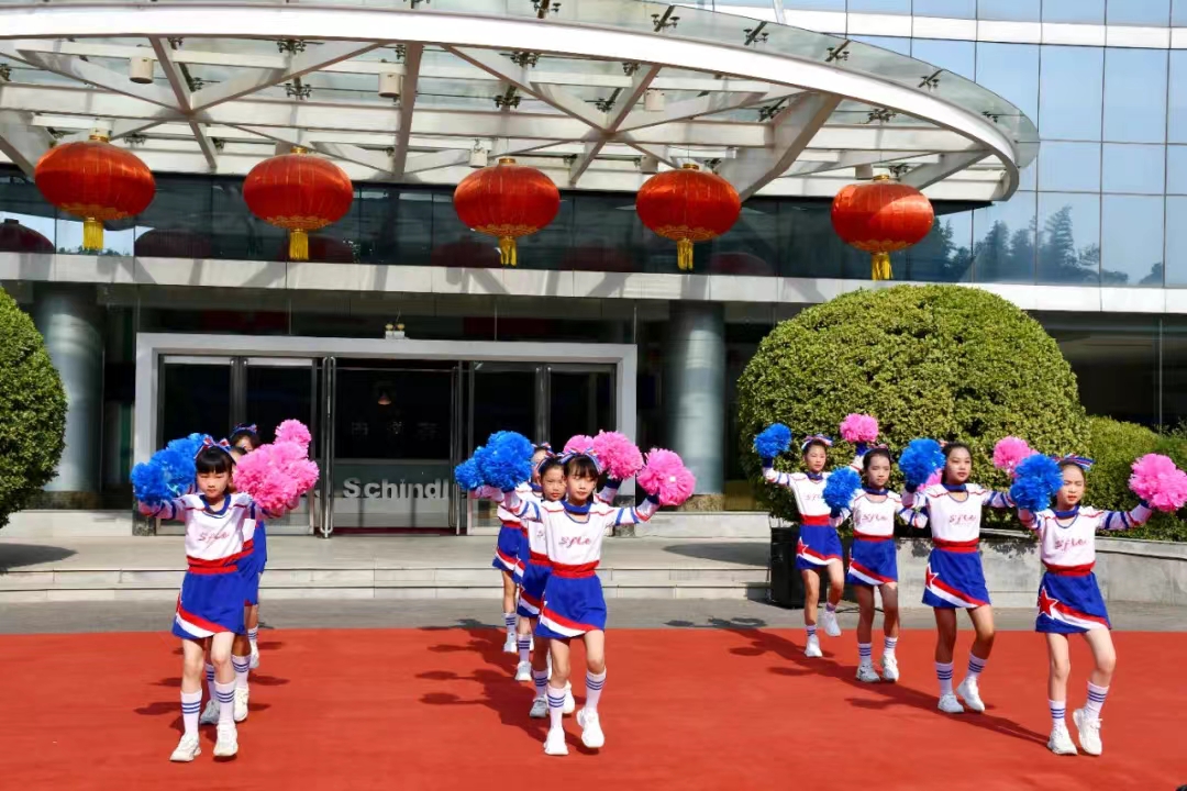 活動現場,70余名優秀學生代表載歌載舞,用啦啦操《我和我的祖國》、葫蘆絲合奏《萬疆》等精彩的表演,表達對西繼迅達的深深謝意。