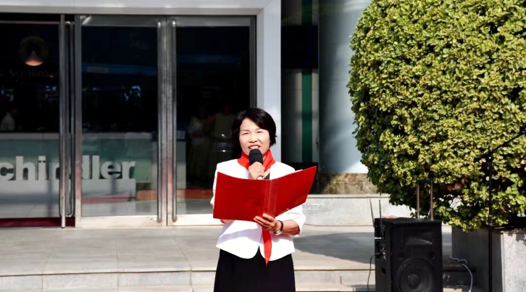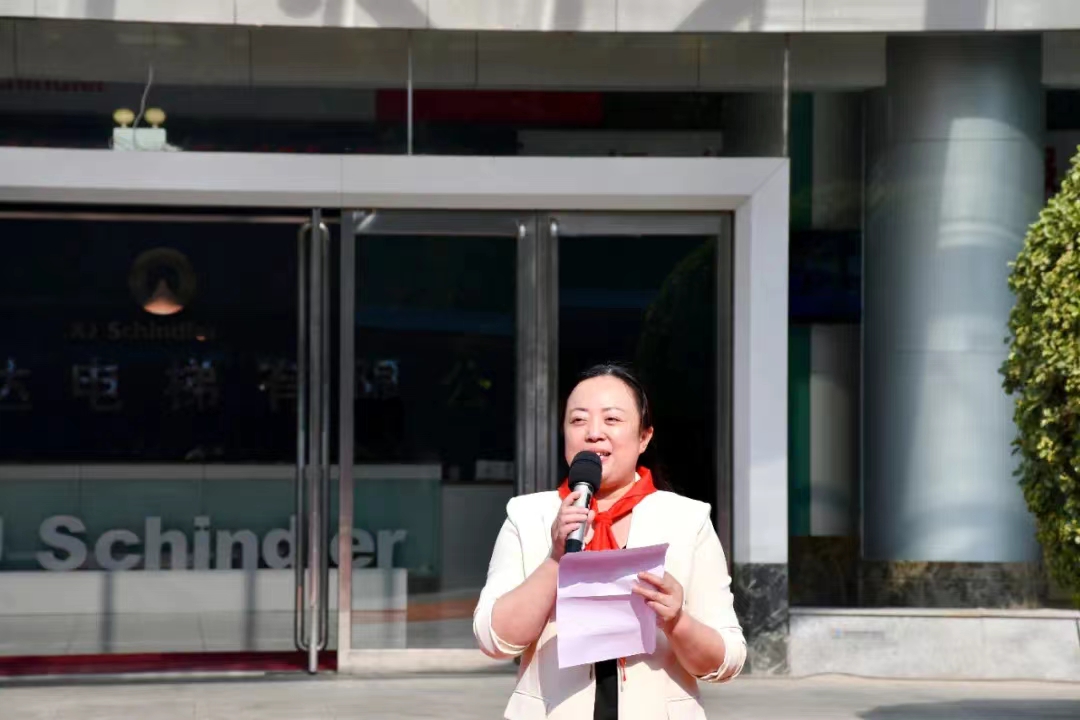 最后,公司售后總監吳娜代表西繼迅達電梯感謝開發區文教衛和瑞昌路小學送來的錦旗。她說,西繼迅達作為一家 有強烈社會責任感的企業,為了給咱們瑞昌路小學的同學們營造一個良好的學習環境,讓孩子們在更多的關愛中愉 快地學習、幸福地成長,我們西繼迅達電梯為瑞昌路小學教學樓捐助電梯,充分凝聚著我們西繼迅達電梯劉董事長 的愛心和熱情,寄托著我們所有西繼迅達人的殷切期望,祝愿孩子們好好學習!健康成長!早日實現自己的人生理想。