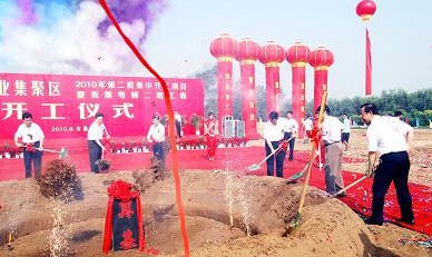當市長李亞宣布工程開工時,幾支“火箭”帶著清亮的哨音一飛沖天,現場的人們發出陣陣歡呼。市領導李亞、楊獻波、董晉平一行在公司董事長、總經理劉金忠的陪同下,揮鍬為工程奠基。在陣陣喜樂和震耳鞭炮聲中,漫天飛舞的彩帶將會場氣氛推向高潮。