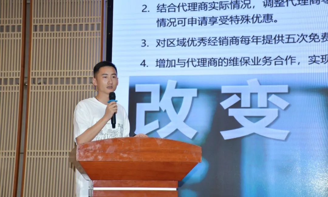 公司維保部部長陳帥宇對維保市場進(jìn)行分析并通報(bào)下步對銷售工作的服務(wù)支持措施