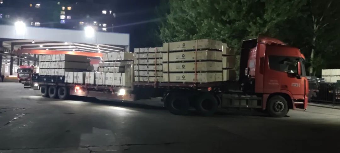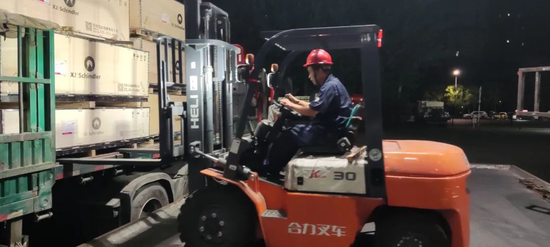 深夜,滿載貨物的車輛蓄勢待發(fā),正在做發(fā)貨前的各項準備工作,力爭以最快的速度把電梯設(shè)備運送至安裝現(xiàn)場。