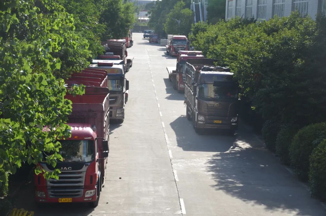 物流發(fā)運中心的貨車臨時停靠區(qū),一輛輛等待裝車的貨車,時刻準備著執(zhí)行更艱巨的任務(wù)。