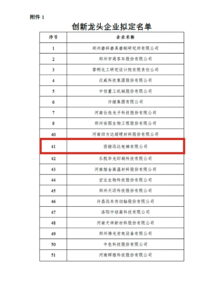 12月22日,河南省科技廳官網發布《關于2021年河南省創新龍頭企業和“瞪羚”企業擬定名單》,西繼迅達電梯榜上有名,被省科技廳認定為河南省創新龍頭企業。公司曾在2017年11月被首批認定為省創新龍頭企業,憑借著精彩表現,今年西繼迅達再次榮獲此項殊榮。