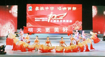 晚7時(shí)整,“愛我中華 唱響西繼”暨西繼十周年慶典大型文藝晚會(huì),在全體管理人員合唱的《今天是您的生日》中拉開了帷幕。公司領(lǐng)導(dǎo)與身披紅色授帶的優(yōu)秀員代表一起興致勃勃在晚會(huì)現(xiàn)場(chǎng)前排就座。晚會(huì)現(xiàn)場(chǎng)座無虛席,觀眾手持熒光棒、小國(guó)旗為演出鼓掌喝彩。歡快的舞蹈、嘹亮的歌聲抒發(fā)了西繼人熱愛公司、祝福祖國(guó)的心情。整場(chǎng)晚會(huì)以跌宕起伏的三個(gè)篇章華麗呈現(xiàn),即“歌唱祖國(guó)”、“歡聚一堂”和“走向輝煌”,另外設(shè)有三個(gè)獎(jiǎng)品豐厚的抽獎(jiǎng)環(huán)節(jié)。