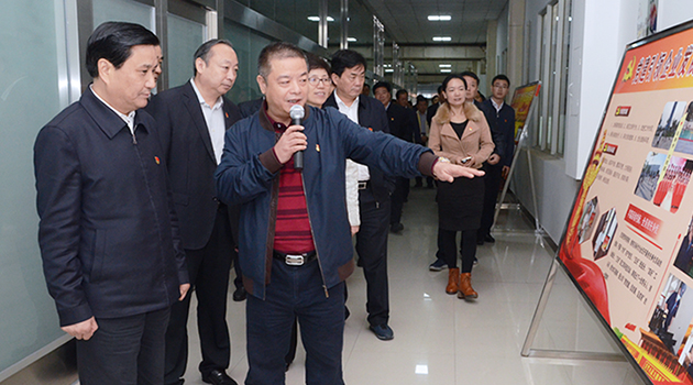 日前,市委書記武國定,帶領全市基層黨建工作觀摩團蒞臨公司,對公司黨建工作進行實地觀摩。公司領導劉金忠、陳衛東陪同觀摩,并對公司黨建工作整體狀況,進行了詳細匯報。