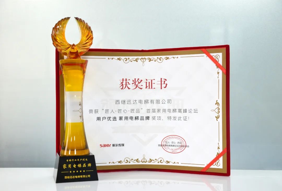 西繼迅達(dá)電梯榮獲“用戶優(yōu)選家用電梯品牌”榮譽(yù)稱號