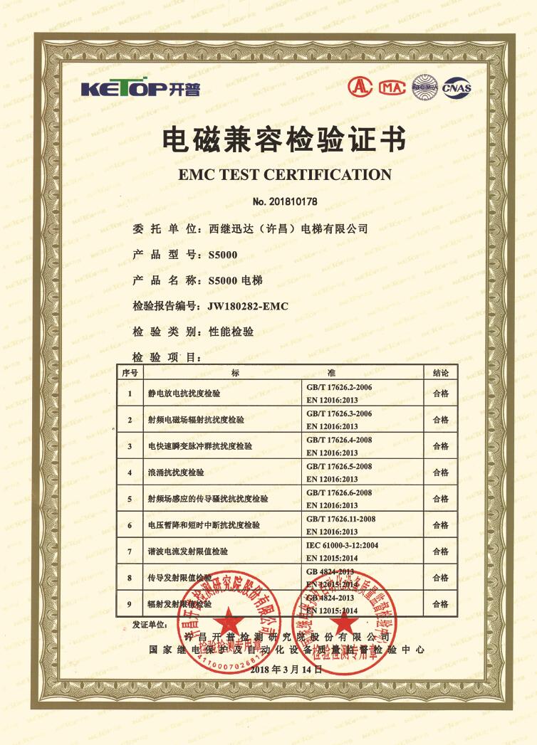 西繼迅達(dá)整梯通過電磁兼容EMC檢測